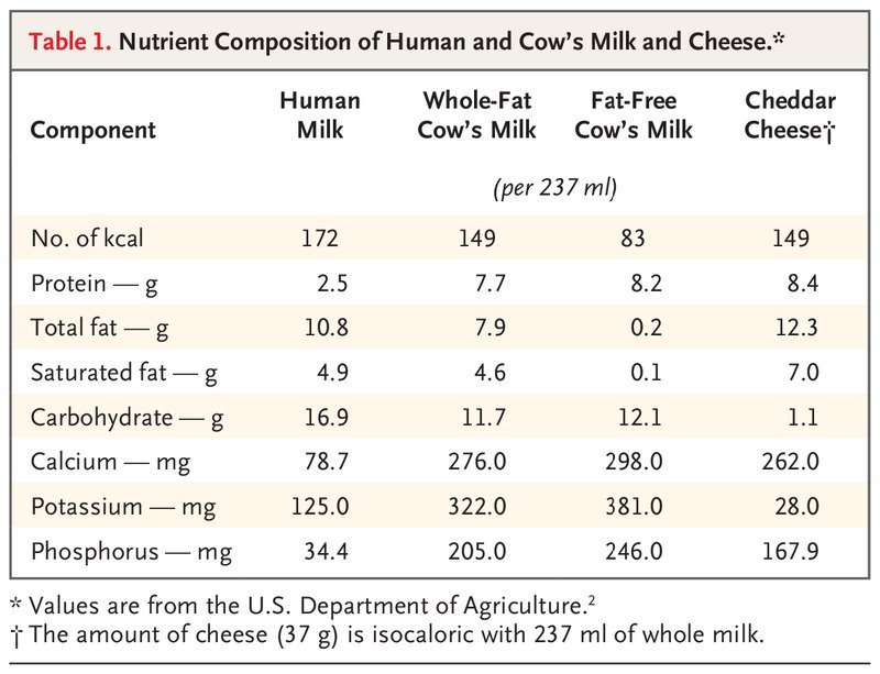 Nährstoffzusammensetzung von Menschen- und Kuhmilch sowie Käse