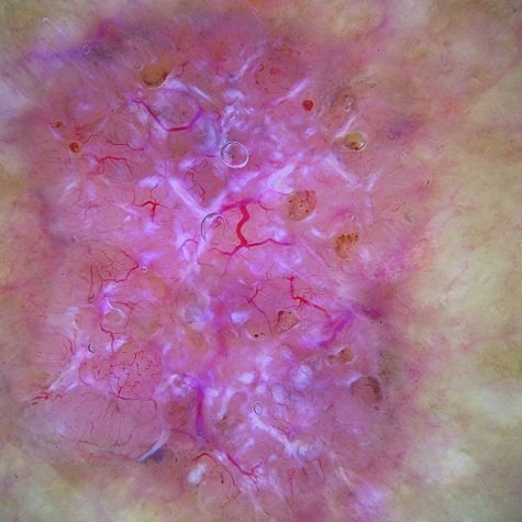 Mit polarisiertem Licht sind die Gefäßstrukturen einer Hautläsion besonders gut beurteilbar. Die Gefäßbeurteilung gewinnt im Hinblick auf ihre Morphologie und ihr Arrangement immer mehr an Bedeutung, gerade dann, wenn typische melanozytäre Strukturen fehlen, wie z.B. beim amelanotischen Melanom.
